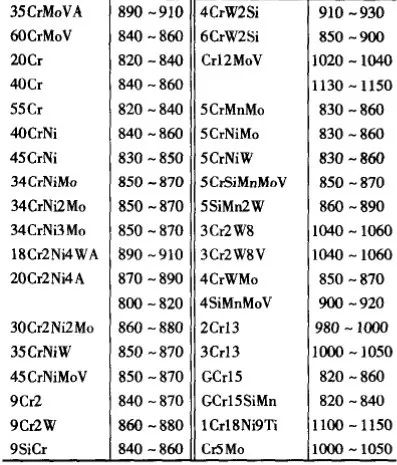 ▼表7 1Cr13、2Cr1、Cr5Mo大型鍛件熱處理工藝規范