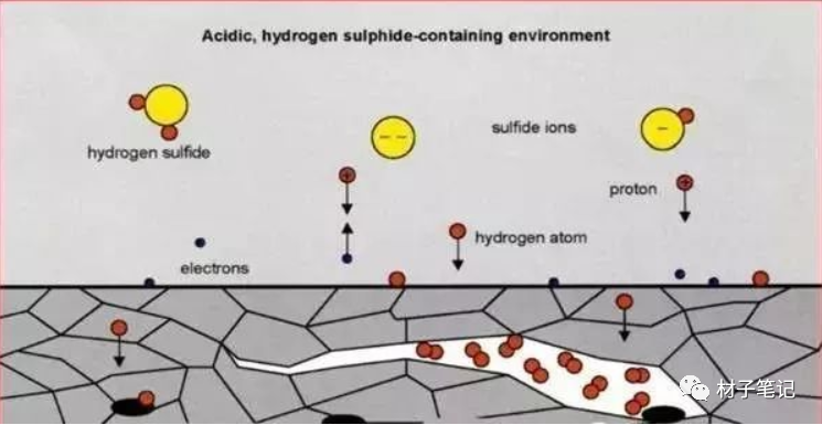 ③ 氫腐蝕機理  氫腐蝕是指在高溫高壓條件下,氫進入金屬,發生合金組分與氫的化學反應,生成氫化物等,從而導致合金強度下降,發生沿晶界開裂的現象。