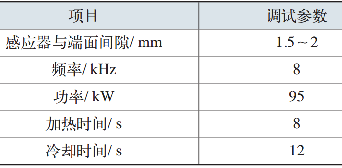 表5 工藝參數(shù)(異形感應(yīng)器)