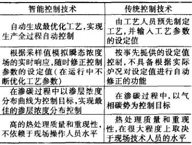 ▼表1 滲碳智能控制技術和傳統控制技術的比較