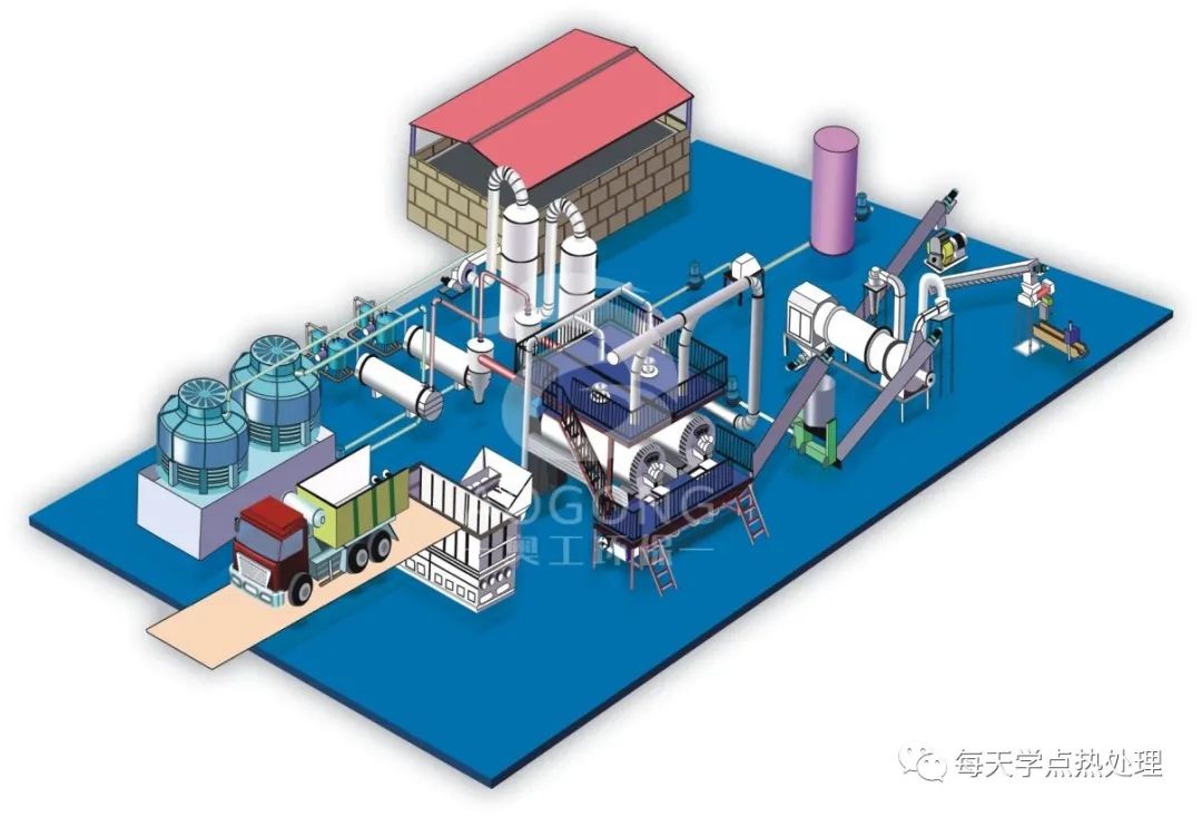 3臺密封箱式滲碳爐,1臺清洗機,2臺回火爐,2臺升降平臺(裝料臺),2臺固定平臺(裝料臺),2臺吸熱式氣氛發生爐,氧碳擴散控制計算機,氧碳控制儀,氮氣、氨、丙烷汽化等裝置,以及測定和校正碳勢的輔助儀器,即箔片天平和露點儀。