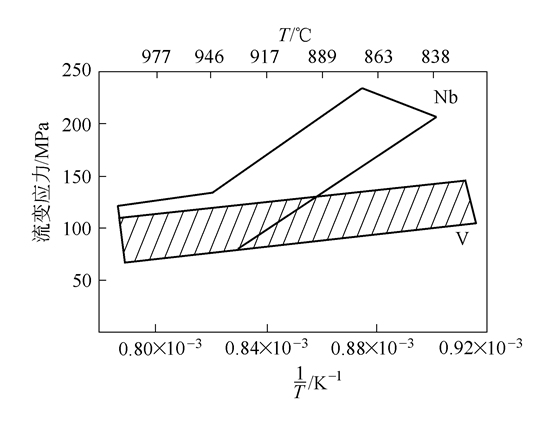 1  釩鋼流變應(yīng)力與終軋溫度的關(guān)系