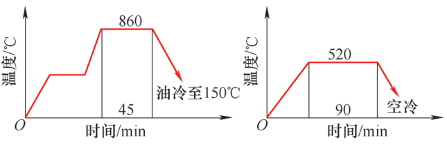 淬火860℃,保溫45min,油冷至150℃;回火520℃,保溫90min,空冷至室溫,工藝曲線如圖3所示。