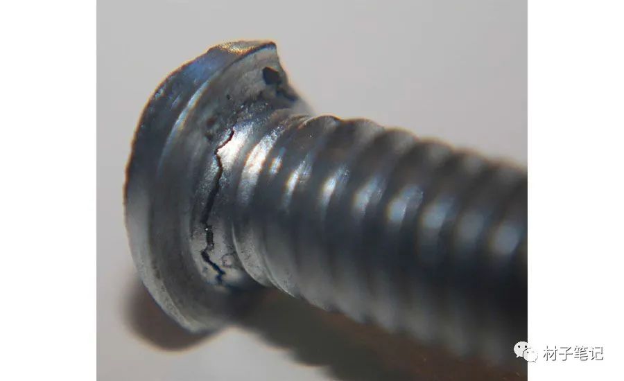 4)當扭矩太大時,靠近頭部的螺紋太近的話會增加頭部的壓力。這種情況也可能導致從頭到桿部的失敗。因為這個缺陷會增加徑向應力,當它出現在緊固件中時會加速氫脆(見圖3)。