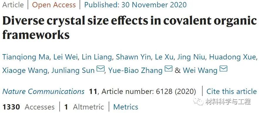 晶體尺寸效應對材料的各種性能及其功能有著重要的影響,在材料科學中具有重要的意義。盡管共價有機骨架在許多方面都表現出了良好的性能,但由于其可控合成困難,其晶體尺寸效應一直未被報道。