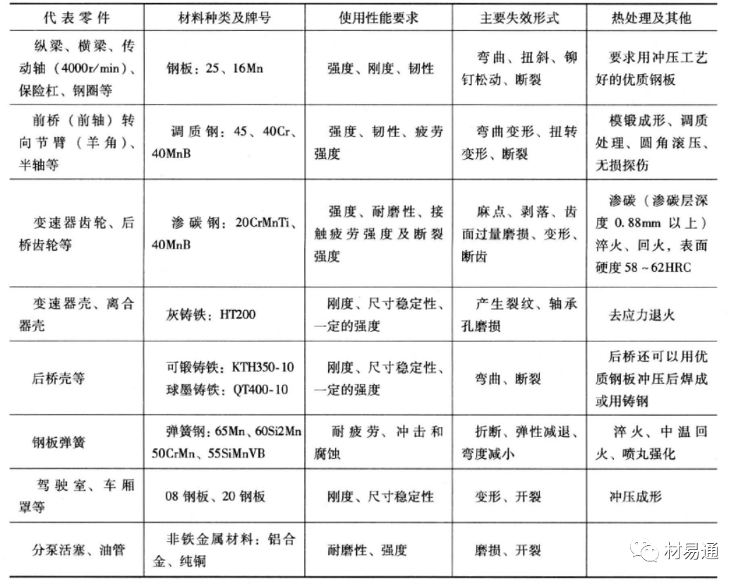 根據齒輪的工作條件,其主要失效形式是疲勞斷裂、齒面接觸疲勞破壞、齒面磨損以及過載斷裂。汽車齒輪的主要失效形式及失效表現見表。
