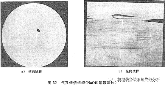 在橫向低倍試樣上,氣孔是指未經侵蝕即可顯現的內壁光滑的圓形或橢圓形的孔洞。氣孔在鑄錠中的分布沒有規律,常與疏松伴生,壓力加工后氣孔可被變形,但不能壓合。