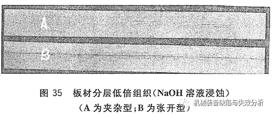 板材分層包括張開型和夾雜物型兩種,在橫向低倍試樣的中心線上,呈直線或線段狀的開裂稱為張開型分層,在橫向低倍試樣上,呈現分布部位不定的暗褐色或短條狀開裂稱為夾雜物分層。