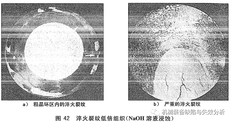 淬火裂紋是在淬火處理的加工制品低倍試樣上沿晶界開裂的網狀裂紋,輕者分布于邊部的粗晶區,重者則能擴展到中心細晶區。