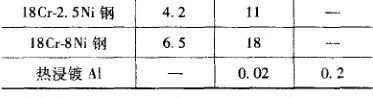 所選用的覆蓋層材料為陽極性與陰極性兩種。如果鍍層材料的電極電位比基體金屬低時(負), 它成為陽極,基體是陰極,受覆蓋層的保護。鍍層中存在空隙時也不影響防蝕效果,例如鋼鐵表面鍍Zn屬此類情況。如果鍍層材料的電極電位比基體高(正),則基體為陽極,鍍層是陰極,鍍層中如存在空隙時將加速基體金屬腐蝕。例如鋼鐵表面鍍 Sn屬此類鍍層材料。將基體金屬浸人熔融狀態的液體金屬中,使表面沾上一層鍍層金屬,防止基體受腐蝕。熱浸鍍Zn的歷史最長,至今仍是鋼鐵防腐蝕的重要措施。鍍Zn層具有良好的耐蝕性,在水及大氣介質中Zn的平均腐蝕速度是鋼鐵的1/25。鍍Zn層在城市大氣中的腐蝕速度約為2~7μm/a(注:a—年的縮寫,下同。), 有優良的耐蝕性,可使鍍Zn板壽命達到50年。海洋大氣中的腐蝕速度與城市大氣相同,約為1~7μm/a, 飛濺區的腐蝕速度約為15μm/a.熱帶地區鍍Zn層的腐蝕速度也不大,干大氣中小于 2μm/a, 潮濕大氣中小于3μm/a, 海岸區小于6um/a。鍍Zn層在硬水中腐蝕速度約為2.5mg/ (㎡·a) , 在軟水中約為硬水中10倍。水中溶解氧越多,腐蝕越快。水溫對鍍Zn層的腐蝕有影響,工業用水40℃左右、軟水90℃左右腐蝕最快。浸泡在海水中的鍍Zn 鋼板的腐蝕速度約為12~24μm/a。熱浸鍍AI防腐蝕方法發展迅速,其工藝與熱浸Zn相似。Al的電極電位為-1.66V, 比Fe(-0.44V) 和Zn (-0.1763V) 都低。鍍AI層能形成致密又穩定的Al2O3, 保護膜,起到良好的防蝕作用。如鍍 AI層發生機械損傷時,鍍Al層對鋼鐵基體仍可起保護作用。鍍Al鋼板耐大氣腐蝕,也耐海水腐蝕、土壤腐蝕及應力腐蝕。鍍Al 鋼板耐大氣腐蝕能力是鍍 Zn 鋼板的3~6倍。圖1 是熱浸鍍Zn 鋼板與熱浸鍍 Al 鋼板耐工業大氣腐蝕的比較。鍍Al鋼板還具有耐含S介質的腐蝕能力。表1 及表2 是熱浸鍍Al鋼板在高溫氧化、硫化氣氛及H2O介質中的腐蝕效果。▼表1 中的暴露試驗在高溫氧化、硫化氣氛