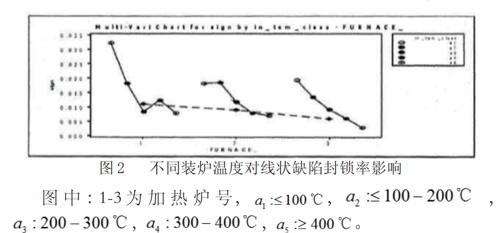 由圖 2 可見,板坯溫度與缺陷發生率呈現反比趨勢。