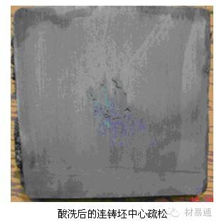 說明:鋼的不致密性的表現。切片經過酸液腐蝕以后,擴大成很多洞穴,根據其分布可分:一般疏松、中心疏松。