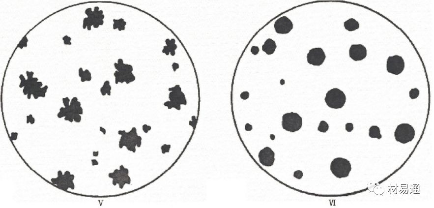 石墨分類示意圖(V型是團狀,Ⅵ型是球狀)