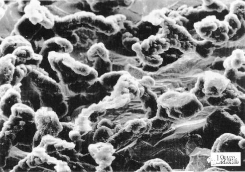 蠕墨鑄鐵的石墨形態是蠕蟲狀和球狀石墨共存的混合形態。蠕蟲狀石墨是介于片狀石墨及球狀石墨之間的中間狀態類型石墨,她既有在共晶團內部石墨互相連續的片狀石墨的組織特征,又有石墨頭部較圓、其位向特點和球狀石墨相似的特征。用掃描電子顯微鏡對其立體形貌進行觀察,可見石墨的端部具有明顯的螺旋生長特征,這與球狀石墨的表面形貌相類似,但在石墨的枝干部分,有類似于片狀石墨的層疊狀結構。蠕墨鑄鐵的力學性能和物理性能取決于石墨的蠕化狀態及基體組織等因素,其中尤以石墨的蠕化狀態影響最大。