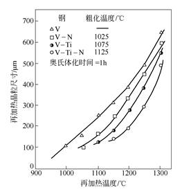 (1)較高的奧氏體晶粒粗化溫度。在再加熱時,采用再結晶控制軋制的鋼應具有較高的奧氏體晶粒粗化溫度,防止再加熱時奧氏體晶粒異常長大,使再加熱后原始奧氏體晶粒盡量細小,為最終獲得組織細化創造條件。