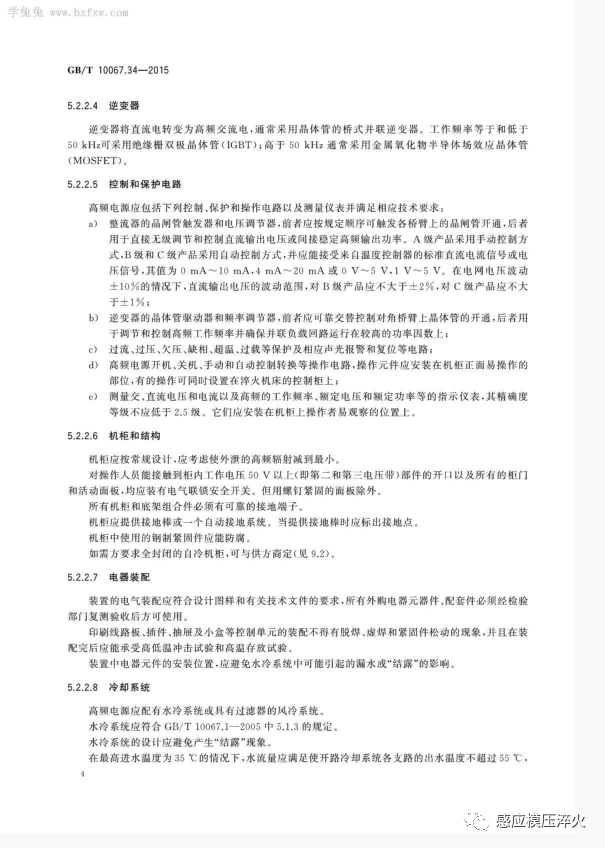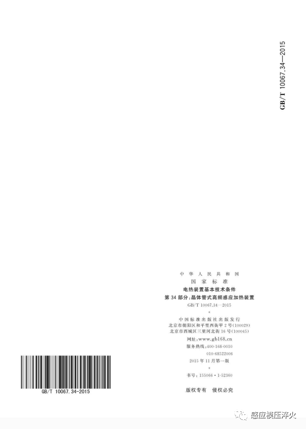 GBT 10067.34-2015 電熱裝置基本技術條件 第34部分:晶體管式高頻感應加熱裝置 【標準分享】