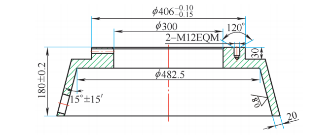 1)解決零件薄壁處尺寸的變化,就要對(duì)薄壁處的尺寸變化加以限制。根據(jù)零件的形狀和我公司淬火設(shè)備的特點(diǎn),將淬火工裝加以改進(jìn),外壓模的內(nèi)壁設(shè)計(jì)成15°的斜面。