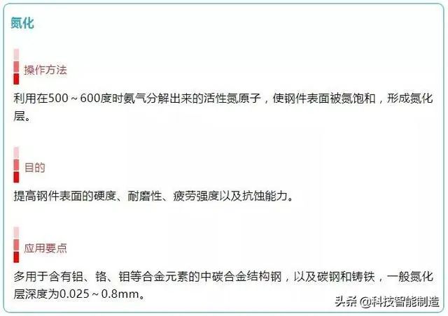 7.化學熱處理:化學熱處理是通過改變工件表層化學成分、組織和性能的金屬熱處理工藝。化學熱處理是將工件放在含碳、氮或其它合金元素的介質(氣體、液體、固體)中加熱,保溫較長時間,從而使工件表層滲入碳、氮、硼和鉻等元素。