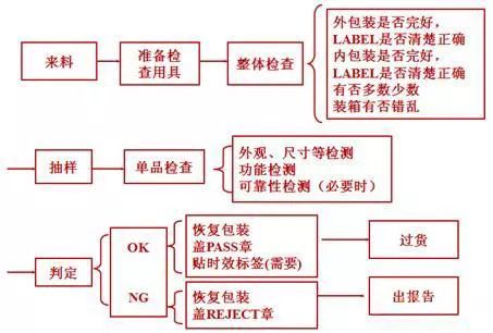 IQC(IncommingQuality Control)即來(lái)料品質(zhì)檢驗(yàn),指對(duì)采購(gòu)進(jìn)來(lái)的原材料、部件或產(chǎn)品做品質(zhì)確認(rèn)和查核,即在供應(yīng)商送原材料或部件時(shí)通過(guò)抽樣的方式對(duì)品質(zhì)進(jìn)行檢驗(yàn),并最后做出判斷該批產(chǎn)品是接收還是退換。 2. 來(lái)料檢驗(yàn)的意義 IQC是企業(yè)產(chǎn)品在生產(chǎn)前第一個(gè)控制品質(zhì)的關(guān)卡,其目的是將質(zhì)量控制前移,把質(zhì)量問(wèn)題發(fā)現(xiàn)在最前端,減少質(zhì)量成本,達(dá)到有效控制。如把不合格品放到制程中,則會(huì)導(dǎo)致制程或最終產(chǎn)品的不合格,造成巨大的損失。IQC不僅影響到公司最終產(chǎn)品的品質(zhì),還影響到各種直接或間接成本。 在制造業(yè)中,對(duì)產(chǎn)品品質(zhì)有直接影響的通常為設(shè)計(jì)、來(lái)料、制程、儲(chǔ)運(yùn)四大主項(xiàng),一般來(lái)說(shuō)設(shè)計(jì)占25%,來(lái)料占50%,制程占20%,儲(chǔ)運(yùn)1%到5%。綜上所述,來(lái)料檢驗(yàn)對(duì)公司產(chǎn)品質(zhì)量占?jí)旱剐缘牡匚唬砸褋?lái)料品質(zhì)控制升到一個(gè)戰(zhàn)略性地位來(lái)對(duì)待。 3. 來(lái)料檢驗(yàn)員的職責(zé) 來(lái)料檢驗(yàn) 主要工作是來(lái)料檢驗(yàn),而IQC檢驗(yàn)可簡(jiǎn)述為對(duì)外協(xié)、外購(gòu)的物料全部或其主要特性參照該物料的相關(guān)標(biāo)準(zhǔn)進(jìn)行確認(rèn);或?qū)ζ涫欠穹鲜褂靡筮M(jìn)行確認(rèn)的活動(dòng)。 處理物料質(zhì)量問(wèn)題 IQC還要對(duì)檢驗(yàn)過(guò)程中發(fā)現(xiàn)的質(zhì)量問(wèn)題進(jìn)行跟蹤處理,以及生產(chǎn)和市場(chǎng)反饋的重大物料質(zhì)量問(wèn)題的跟蹤處理,并在IQC內(nèi)部建立預(yù)防措施等。 全過(guò)程物料類質(zhì)量問(wèn)題統(tǒng)計(jì)、反饋 統(tǒng)計(jì)來(lái)料接收、檢驗(yàn)過(guò)程中的質(zhì)量數(shù)據(jù),以周報(bào)、月報(bào)形式反饋給相關(guān)部門,作為供應(yīng)商的來(lái)料質(zhì)量控制和管理的依據(jù)。 參與物料有關(guān)部門的流程優(yōu)化 參與物流控制環(huán)節(jié)中的相關(guān)流程優(yōu)化, 對(duì)于物流中和物料檢驗(yàn)有關(guān)的流程優(yōu)化提出建議和意見。 4. 來(lái)料檢驗(yàn)四大抽樣方法介紹 IQC在來(lái)料檢驗(yàn)時(shí),經(jīng)常會(huì)遇到各種各樣的不良,檢查時(shí)要從來(lái)料整體和抽取樣品兩方面來(lái)進(jìn)行檢查,下面我們主要針對(duì)IQC抽樣方法進(jìn)行介紹。 層次抽樣法 來(lái)貨若為分層擺放或次序排列的,則可采用層次抽樣法進(jìn)行抽樣。見下圖示。如電阻、電容等貼片料多卷擺放在一起,卡通箱等分層疊放等,則適用之。 對(duì)角抽樣法 對(duì)于來(lái)貨擺放橫豎分明、整齊一致的,則可采用對(duì)角抽樣法進(jìn)行抽樣。見下圖示。如使用托盤等盛裝或平鋪放置的來(lái)料,則適用此法。 三角抽樣法 來(lái)貨若擺放在同一平面時(shí),則可采用三角抽樣法抽樣。見下圖示。二中所述情況也適用此法。 S型抽樣法 來(lái)貨若擺放在同一平面時(shí),也可采用S形抽樣法抽樣。見下圖示。 IQC一般主要負(fù)責(zé)對(duì)購(gòu)進(jìn)的材料進(jìn)行質(zhì)量控制,包括檢驗(yàn)和各種數(shù)據(jù)統(tǒng)計(jì)分析等。常用的報(bào)表一般有檢驗(yàn)報(bào)告,月度或年度的進(jìn)料檢驗(yàn)結(jié)果匯總,材料PPM報(bào)告,等等。報(bào)表非常多,可以借助一些軟件系統(tǒng)進(jìn)行分析處理,做到無(wú)紙化、節(jié)省人力成本,提高對(duì)品質(zhì)問(wèn)題的反應(yīng)能力,縮短反應(yīng)時(shí)間,同時(shí)可自動(dòng)采集檢測(cè)數(shù)據(jù)并生成IQC所需的報(bào)表,也提高作業(yè)人員工作效率。 5. 工作原則 IQC是公司與供應(yīng)商打交道的一個(gè)窗口,同時(shí)也是控制供應(yīng)商品質(zhì)的關(guān)口,IQC工作進(jìn)行得如何,直接關(guān)系到本公司產(chǎn)品品質(zhì)成本及本公司在供應(yīng)商中的印象。 抽樣嚴(yán)謹(jǐn) 抽樣檢驗(yàn)是一個(gè)統(tǒng)計(jì)學(xué)概率存在風(fēng)險(xiǎn),這種風(fēng)險(xiǎn)可能把不良品漏檢而放到生產(chǎn)線上去,也可能把合格品判退,從而間接造成本公司的損失,所以在抽樣時(shí),一定要盡可能讓樣本反映母體的品質(zhì)狀況。在抽樣計(jì)劃中,根據(jù)現(xiàn)行的國(guó)際或國(guó)家標(biāo)準(zhǔn),可以控制在5%以下的風(fēng)險(xiǎn)率,但在具體抽取樣本的過(guò)程中,可能因個(gè)人偏好而造成母體的隨機(jī)性不夠,所以在抽樣方法上要特別注意嚴(yán)謹(jǐn)性。 “客觀公正”地判定品質(zhì) IQC人員經(jīng)常同供應(yīng)商接觸形成了“情感氛圍”在檢驗(yàn)時(shí)容易形成主觀的意識(shí),造成對(duì)供應(yīng)商的判定標(biāo)準(zhǔn)有差異。 受個(gè)人心情影響,心情好可能認(rèn)真一點(diǎn),檢驗(yàn)和判定較為慎重;心情差可能就是一眼定乾坤。 受檢驗(yàn)人員個(gè)性的影響,性了急的人在判定上容易主觀,因此要注意客觀公正。如不合格批放到制程,發(fā)生原材料問(wèn)題,首先追究的是IQC人員責(zé)任。 尊重供應(yīng)商 以綜合因素來(lái)判定 在檢驗(yàn)中,有時(shí)會(huì)遇到一些品質(zhì)、時(shí)間、成本、效率上的沖突,如原