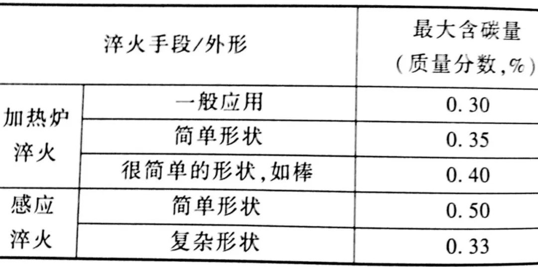 ▼表2 水、NaCl溶液、NaOH溶液淬火建議的含碳量限值