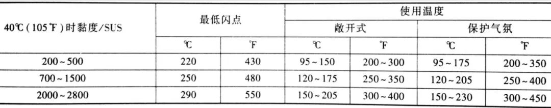分級淬火和等溫淬火都要求淬火冷卻介質的溫度相對較高。分級淬火要求鋼件迅速冷卻到比 Ms 轉變溫度稍高一點的溫度,穩定化,然后冷卻到室溫。這種工藝旨在使開裂傾向最小。淬火油典型的黏度和使用溫度見表8 。