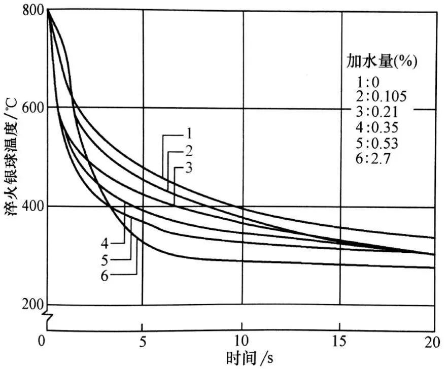 5) 在用20℃ (68℉)的冷水淬火時,由于淬火過程中三種沸騰機制同時存在,造成冷卻結果不一致;但是在60℃ (140下)的熱水中淬火時,蒸汽膜更穩定,膜破裂需要更多的攪拌。