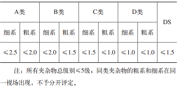 表2  非金屬夾雜物驗(yàn)收標(biāo)準(zhǔn)  (級(jí))