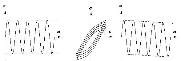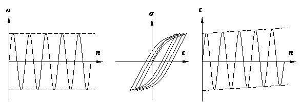 應(yīng)力控制下,循環(huán)硬化材料其應(yīng)變不斷減少;循環(huán)軟化材料其應(yīng)變不斷增加