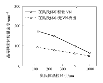 第三代TMCP工藝是針對占鋼產(chǎn)量50%以上的長形鋼材,特別是針對大截面H型鋼的生產(chǎn)工藝特點而開發(fā)的一項工藝冶金技術(shù)。 以翼緣厚度超過80mm的大截面H型鋼為例,介紹一下第三代TMCP工藝特點。以前,建筑用大厚度箱式柱都是采用厚鋼板通過焊接方法組裝而成的,如果能用軋制方法,直接生產(chǎn)出大截面(翼緣厚度大于80mm)H型鋼,用H型鋼直接作為建筑結(jié)構(gòu)的箱式柱,不但減少焊接,而且可靠性提高,施工效率提高,因此近年來在高層建筑的立柱中應(yīng)用不斷增加。 在制造大截面特厚H型鋼時,由于萬能軋機的軋制力相對較小,每道次的形變量1%~10%也較小,因此不可能像軋制厚鋼板那樣采用大軋制力、大壓下的控制軋制技術(shù)(TMCP),導(dǎo)致大截面H型鋼的組織不能充分細化,無法達到抗震性能所要求的韌性。 為克服H型鋼制造工藝的局限性,采用了最大限度發(fā)揮夾雜物(析出物)促進鐵素體相變的功能,開發(fā)了與傳統(tǒng)TMCP不同的一種新型TMCP工藝,采用此工藝能制造出與用厚鋼板制造的箱式柱韌性相當?shù)闹锰睾?/span>H型鋼。如果把控制軋制方法稱為第一代TMCP,把控制軋制+控制冷卻方法稱為第二代TMCP,則開發(fā)的新型TMCP工藝就稱為第三代TMCP工藝。第三代TMCP工藝示于圖1。 圖1 第三代TMCP工藝示意圖 由圖1可以看出,第三代TMCP工藝適用于采用V-N微合金化的高強度低合金鋼,整個軋制過程由兩個冶金階段組成。再加熱溫度希望盡可能低,以獲得均勻細小的奧氏體晶粒。第一階段是在奧氏體再結(jié)晶區(qū)軋制,通過形變-再結(jié)晶的反復(fù)進行,獲得盡可能細的奧氏體晶粒。緊接著的第二階段軋制是在VN析出溫度區(qū)間,即VN析出的鼻子溫度區(qū)間進行,促進VN在奧氏體晶界和晶內(nèi)析出,在隨后的加速冷卻過程中在奧氏體晶界和晶內(nèi)以VN粒子為核心生成大量鐵素體,細化鋼的最終組織。 在第三代TMCP工藝中,奧氏體晶粒尺寸對最終組織的細化起很重要的作用,如圖2所示。通過再加熱溫度的控制和奧氏體的反復(fù)再結(jié)晶,使奧氏體晶粒盡可能細化。細化了的奧氏體,增加了奧氏體的晶界面積,導(dǎo)致晶界鐵素體的數(shù)量密度增加,最終細化鐵素體晶粒。 圖2 奧氏體晶粒尺寸對V-N鋼700℃等溫轉(zhuǎn)變時晶界鐵素體密度的影響 采用第三代TMCP工藝的主要優(yōu)點是提高V-N鋼的性能,如圖3所示,與普通工藝相比,采用第三代TMCP工藝細化了微觀組織,使V-N鋼的屈服強度和0℃夏比沖擊功同時顯著提高。采用第三代TMCP工藝生產(chǎn)的大截面厚壁H型鋼具有與厚鋼板同樣的優(yōu)異性能。 圖3 第三代TMCP工藝對V-N鋼性能的影響