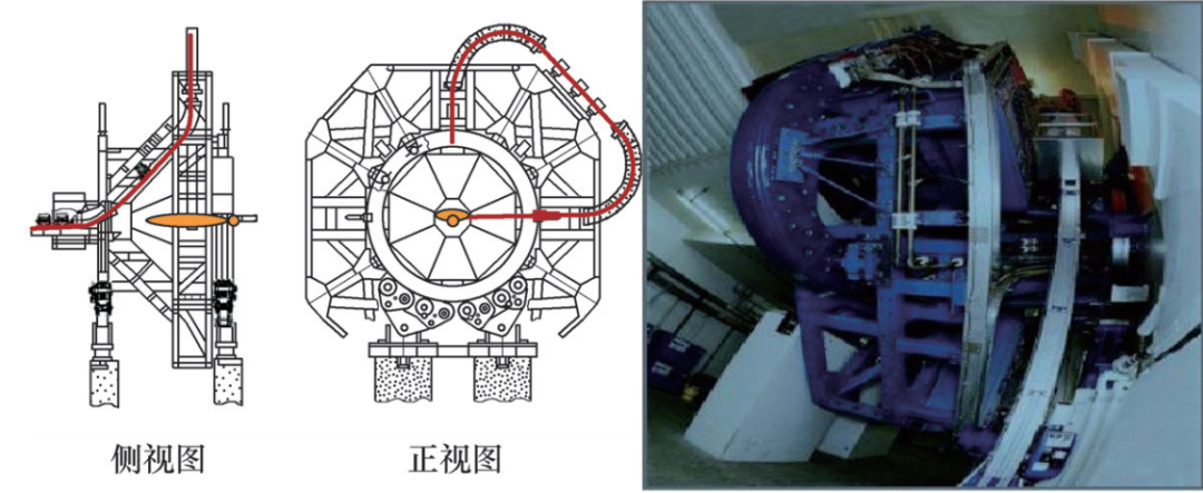 質子治療裝置是由質子加速器、能量選擇系統、旋轉機架及治療頭等組成,如圖1所示。其中,旋轉機架(Gantry)是質子治療裝置關鍵部件之一,其具有結構大、精度高的特點,主要功能是帶動由多塊磁鐵及其他加速器件圍繞回轉軸線旋轉,實現不同角度下對病灶的照射,要求機構功能定位準確、性能可靠、運行平穩和安全。