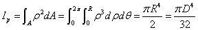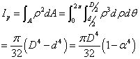 微分面積: dA 上的微內力對圓心的力矩: 對上式進行積分(扭矩定義): 橫截面上的扭矩應與截面一側的外力偶距相平衡 我們引入一個極慣性矩 式中,Ip 為橫截面對形心的極慣性矩(截面二次極矩,單位為m4)。 在圓截面邊緣上有最大切應力: 令 抗扭截面系數(單位:m3) 公式適用條件: 圓桿; τmax≤τp。 其中極慣性矩和抗扭截面系數,在實心軸與非實心軸中的計算是不一樣的。 在實心軸的情況下: 其中,D 為圓截面直徑。 以上就是完整的求圓軸扭轉時的應力的方法和過程了!