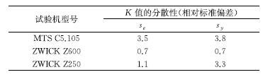 ISO 6892-1:2019(E) Uniaxial Testing Technical Committee. Metallic Materials—Tensile Testing—Part 1:Method of Test at Room Temperature規(guī)定的方法A2,是橫梁位移速率控制,試樣的實(shí)際應(yīng)變速率處于一種開環(huán)控制狀態(tài),并不是像方法A1那樣的閉環(huán)控制狀態(tài)。試樣的應(yīng)變速率受到系統(tǒng)的柔度變形影響,其變形越大,受影響也越大,這是方法A2的主要缺點(diǎn)。此外,按照方法A2,橫梁位移速率一旦給定,在整個(gè)試驗(yàn)中是定數(shù)。因此,在拉伸試驗(yàn)的初始階段,橫梁位移的相當(dāng)部分被用于消除試樣鏈系統(tǒng)各連接件之間的間隙,造成整個(gè)試驗(yàn)總時(shí)間大大增加、試驗(yàn)效率低的缺點(diǎn)。方法A2也有其優(yōu)點(diǎn),相對方法A1而言,方法A2的試驗(yàn)操作相對簡單,所以試驗(yàn)室一般都樂于使用方法A2進(jìn)行拉伸試驗(yàn)。 能否找到一種改良的方法改善前述的缺點(diǎn)和在一定條件下使用?來自鋼研納克檢測技術(shù)股份有限公司的高怡斐、王春華和梁新幫三位研究人員將探討這個(gè)問題解決的可能性。 1 橫梁位移速率補(bǔ)償方法之一“斜率補(bǔ)償法” 1.1 拉伸試驗(yàn)?zāi)P?/strong> 對金屬材料進(jìn)行拉伸試驗(yàn),其實(shí)是試樣在拉伸試驗(yàn)系統(tǒng)中被拉伸的試驗(yàn)。所謂拉伸系統(tǒng)是指能夠沿試樣縱軸對試樣鏈?zhǔn)┘永炝Φ南到y(tǒng),試樣鏈由試驗(yàn)機(jī)夾頭、試樣、拉桿、力傳感器等串聯(lián)組成,試樣僅僅是構(gòu)成試樣鏈的一環(huán)。由于拉伸系統(tǒng)自身的變形特性,試驗(yàn)機(jī)的橫梁位移并不是全部轉(zhuǎn)移到試樣產(chǎn)生變形,而是有部分被轉(zhuǎn)移到試驗(yàn)機(jī)構(gòu)件自身產(chǎn)生變形。基于這種認(rèn)識,把試樣在拉伸系統(tǒng)中進(jìn)行的拉伸試驗(yàn),看成為代表試驗(yàn)機(jī)的一個(gè)大彈簧串聯(lián)一個(gè)試樣的拉伸試驗(yàn),如圖1所示。顯然,在拉伸過程中,試驗(yàn)機(jī)橫梁位移被分配到了彈簧和試樣的變形上去。為了便于分析,建立一種拉伸試驗(yàn)?zāi)P停喊言嚇悠叫虚L度的變形作為一個(gè)變形分系統(tǒng),簡稱平行長度系統(tǒng);把試樣的兩過渡弧和兩被夾持頭部與大彈簧串聯(lián),組成另一個(gè)變形分系統(tǒng),簡稱試驗(yàn)機(jī)系統(tǒng),兩個(gè)分系統(tǒng)串聯(lián)成拉伸試驗(yàn)?zāi)P停鐖D2所示。根據(jù)這一模型,試驗(yàn)機(jī)橫梁位移由試驗(yàn)機(jī)系統(tǒng)伸長分量和平行長度系統(tǒng)伸長分量組成,其數(shù)學(xué)模型為: 式中:δc為試驗(yàn)機(jī)橫梁位移;δM為試驗(yàn)機(jī)系統(tǒng)的伸長;δp為試樣平行長度(系統(tǒng))的伸長。 圖1 代表試驗(yàn)機(jī)的彈簧串聯(lián)拉伸試樣的示意圖 無論試驗(yàn)機(jī)系統(tǒng)和平行長度系統(tǒng)分別處于彈性或塑性變形狀態(tài),式(1)表示的關(guān)系仍然保持。式(1)右邊第2項(xiàng)伸長δp,無論在彈性或者在塑性狀態(tài),都可以表示為: 式中:ep為平行長度的拉伸應(yīng)變(通過引伸計(jì)系統(tǒng)測定);Lc為平行長度。 圖2 平行長度系統(tǒng)與試驗(yàn)機(jī)系統(tǒng)串聯(lián)的 拉伸試驗(yàn)?zāi)P?/span> 式(1)右邊第1項(xiàng)伸長δM可以表示為: 式中:F為施加的拉伸力;CM為試驗(yàn)機(jī)系統(tǒng)的剛度。 剛度表示給定工件或結(jié)構(gòu)件在力作用下變形的困難程度,用力與變形之比表示。試驗(yàn)機(jī)系統(tǒng)的剛度CM表示為: 1.2 試驗(yàn)機(jī)橫梁位移速率和應(yīng)變速率的一般性表示 為了得到試驗(yàn)機(jī)橫梁位移速率vc的表示式,將式(1)兩邊取對時(shí)間的導(dǎo)數(shù): 將式(2)和式(3)代入式(5)后變?yōu)?/span> 式(6)的右邊的各量,其中力F和應(yīng)變ep與時(shí)間有關(guān),是時(shí)間的函數(shù);平行長度Lc與時(shí)間無關(guān),是常量;剛度CM在線性(比如線彈性)變形狀態(tài)與時(shí)間無關(guān),是常量,而在非線性(比如彈-塑性)變形狀態(tài)與時(shí)間有關(guān),是時(shí)間的函數(shù)。為了一般化,將剛度CM看作為變量,是時(shí)間的函數(shù)。經(jīng)過推導(dǎo)和運(yùn)算得到式(7)。 式中:M為dF/dδM,是試驗(yàn)機(jī)系統(tǒng)力-伸長曲線上對應(yīng)于平行長度系統(tǒng)應(yīng)力-應(yīng)變曲線上感興趣點(diǎn)m處的曲線斜率,參見圖3。 圖3 平行長度系統(tǒng)和試驗(yàn)機(jī)系統(tǒng)的應(yīng)力-應(yīng)變曲線和力-伸長曲線 因?yàn)槠叫虚L度系統(tǒng)與試驗(yàn)機(jī)系統(tǒng)是串聯(lián)拉伸,平行長度橫截面上承受的力也就是試驗(yàn)機(jī)系統(tǒng)所承受的力,因此式(7)右邊的力的速率可以表示為: 將式(8)代入式(7)后,可表示為: 式(9)右邊的 實(shí)質(zhì)是等于平行長度系統(tǒng)(即平行長度)的應(yīng)力-應(yīng)變曲線(即R-ep曲線)的斜率,因?yàn)椋?/span> 將式(10)代入式(9),得到橫梁位移速率表示式: 式(11)即為考慮了試驗(yàn)機(jī)系統(tǒng)剛度時(shí)導(dǎo)出的橫梁位移速率一般性表示式。 根據(jù)式(11),可以建立兩種不同橫梁位移速率vc1和vc2之間的相互關(guān)系: 令上述兩式相除,產(chǎn)生: 根據(jù)下面章節(jié)3的試驗(yàn)數(shù)據(jù)和分析結(jié)論,可以假設(shè)式(14)右邊參數(shù) 這樣由式(14)得到: 式(15)為方法A2中兩種不同橫梁位移速率的關(guān)系式。 1.3 方法A2補(bǔ)償橫梁位移速