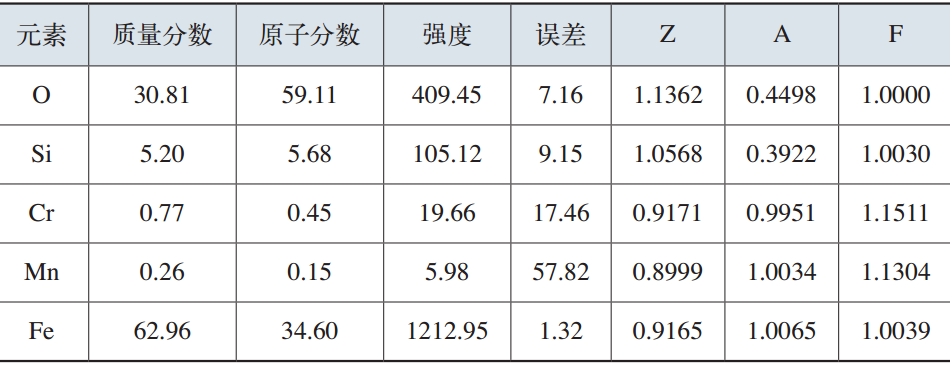 表8 疲勞源區次表面腐蝕產物能譜成分分析 (%)
