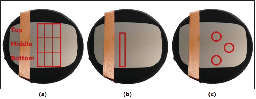 50  實驗后鋼樣表征的位置(UNILEOB-FM), (a)全氧試樣,(b)自動化SEM/EDS夾雜物分析試樣,(c)化學成分取樣位置