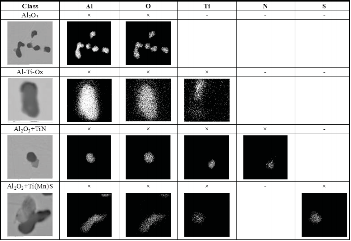 除考慮了系列2中夾雜物的化學成分外,還考慮了其其形態的變化,鈦鐵合金的加入可能引起氧化鋁顆粒形態的顯著變化。文獻報道,Ti的局部過飽導致了Ti與周圍夾雜物反應,發生Al2O3的改性。[10][11]