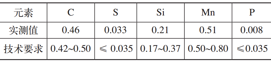 表1 45鋼杠桿化學成分(質量分數) (%)