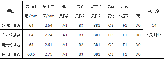 (2)滲碳過(guò)程中的參數(shù)主要影響硬化層深度方面的控制,而表層彌散碳化物的獲得則主要靠二次加熱淬火過(guò)程的控制。