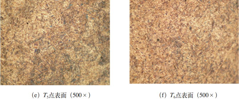 產品:外圈溝道FLHSN3035FT1,材質為42CrMo4+QT-EN10083,溝道淬火硬度58~62HRC,硬化層深度≥7.5mm(52.5HRC處)。實物如圖4所示,圖樣工藝要求如圖5所示,硬化層切割試塊如圖6所示,檢測結果見附表,金相組織如圖7所示。