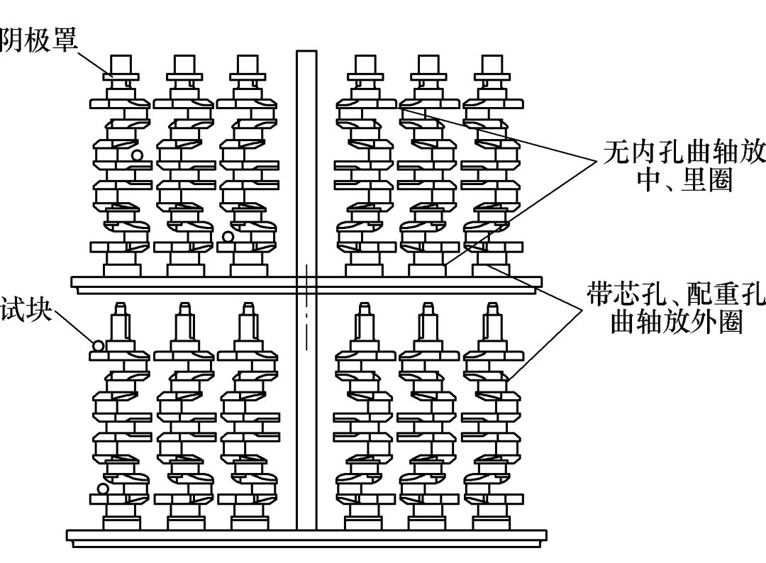 圖2 4105型帶芯孔曲軸離子氮化工藝