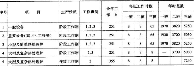 ▼表2 熱處理車間設備設計年時基數