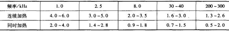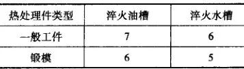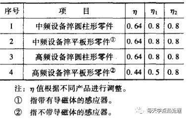(2) 感應淬火用水量。感應淬火用水的常用壓力為200~300kPa, 單位淬火面積單位時間所需淬火冷卻水量指標如表 31所示。