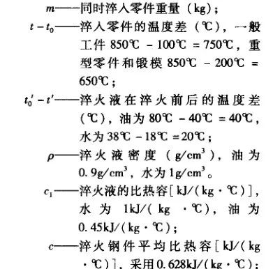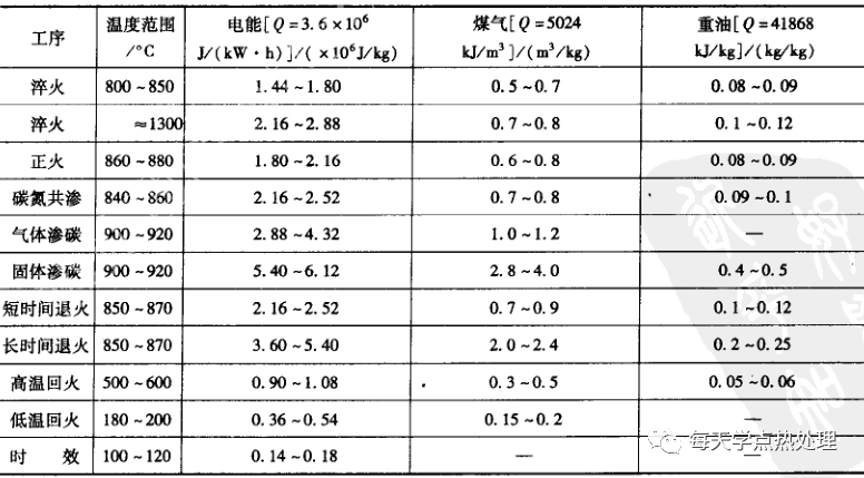 熱處理車間使用蒸汽為飽和蒸汽,常用壓力為200~400kPa.蒸汽的比熱容,一般取較低數值,即2100kJ/kg。表33為各類液槽蒸汽消耗量的概略計算指標。