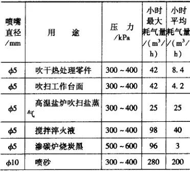 表27 不同用途噴嘴壓縮空氣消耗量