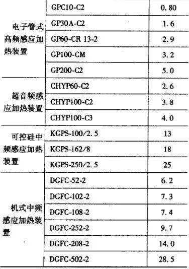 (1) 感應加熱設備冷卻用水量。按設備產品樣本的規定,其耗水量如表30所示。