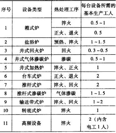 (2) 輔助工人是指生產工人以外,直接為熱處理生產服務的工人,如熱處理件準備工、電工、鉗工、儀表工、起重運輸工等。