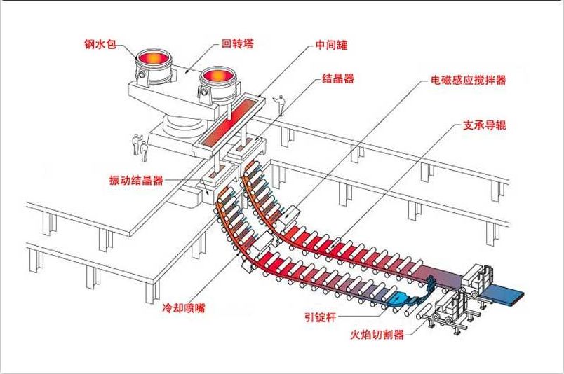 從結晶器出來的鋼坯的凝固殼很薄,約為10—30mm厚,內部仍為鋼液。如果鋼坯表面有缺陷,鋼液有可能流出。因此,為了使從結晶器出來的鋼坯盡可能完全凝固,就必須繼續進行冷卻,這種稱為二次冷卻。