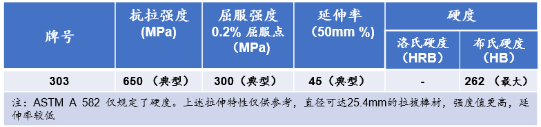 許多棒材產品都有切削加工性能改進型的303牌號,甚至比標準的303切削加工性能更好,機加工速率非常高,刀具磨損更小。