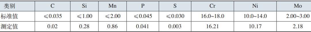對泄漏孔周邊取樣用全譜直讀光譜儀進(jìn)行化學(xué)成分分析,結(jié)果(平均值)見表1,與ASME SA213中TP316L材料成分比較,符合標(biāo)準(zhǔn)要求。