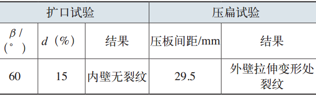 采用電子萬能試驗機進(jìn)行擴口、壓扁試驗,結(jié)果見表3,試驗后擴口試樣形貌如圖3所示,管內(nèi)壁無裂紋。壓扁試樣形貌如圖4所示,壓扁試樣外壁拉伸面產(chǎn)生裂紋,裂紋開口端外壁位置為陳舊斷口,裂紋尖端為新斷口,可見管外壁存在舊裂紋。