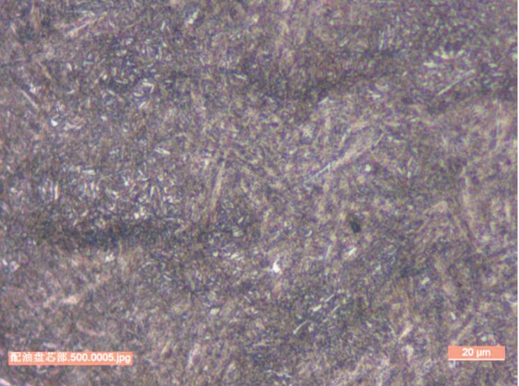 使用直讀式光譜儀對零件進行化學成分分析,該零件設計材質為38CrMoAl,實測結果見表1。表1 配油盤化學成分(質量分數) (%)